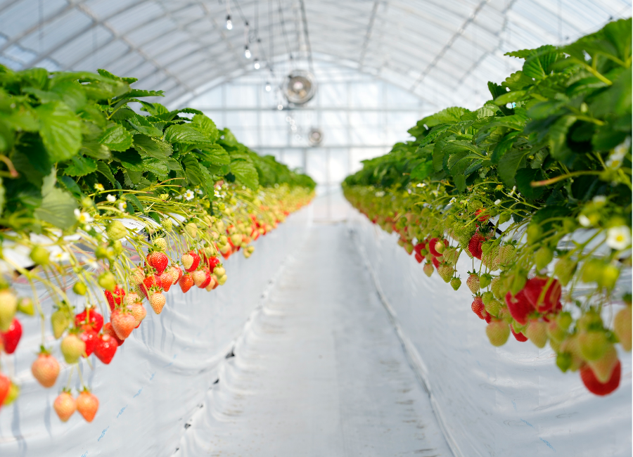 高設栽培で清潔なハウス