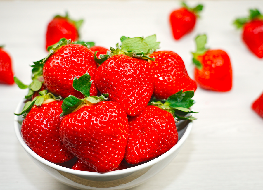 輝く大粒のあまおうを収穫